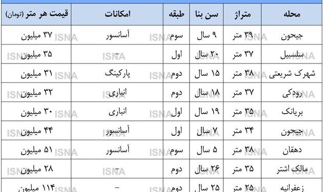 هر متر مسکن در تهران ۴۳.۷ میلیون تومان