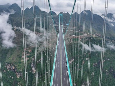 چین با تکمیل پروژه‌ای که بیش از سه سال طول کشید، روز یکشنبه، بلندترین پل جهان را در استان کوهستانی گوئیژو افتتاح کرد.