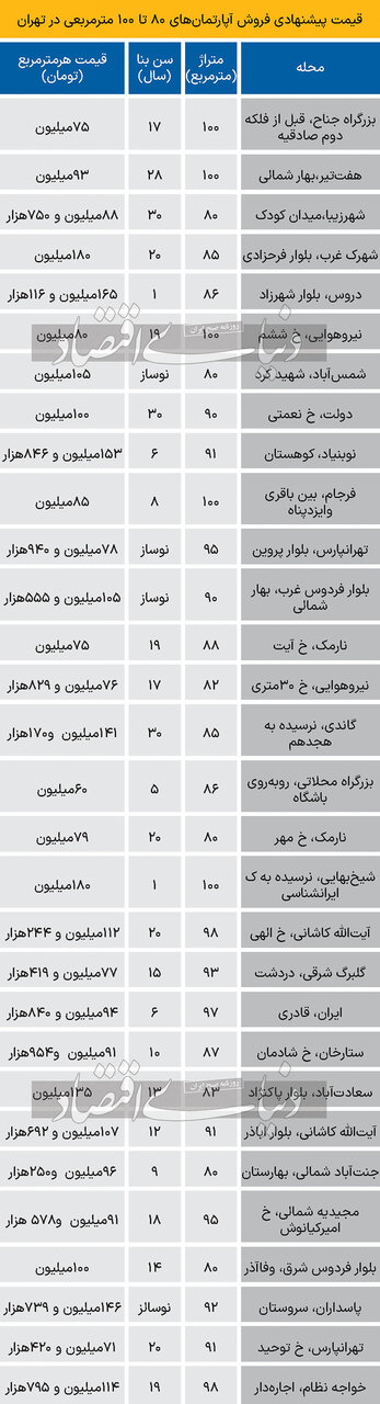 قیمت آپارتمانهای 80 تا 100متری در پایتخت/ قیمت کدام مناطق پایینتر است؟
