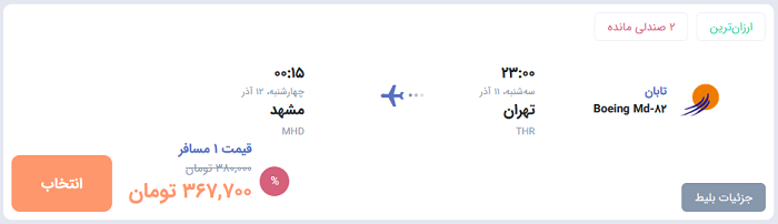 پایینترین قیمت بلیت تهران – مشهد (10 آذر 1399)