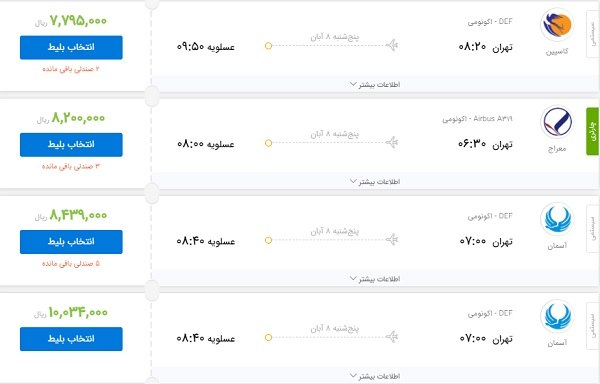 قیمت تمام شده هر نفر-صندلی در پرواز داخلی چه قدر است؟