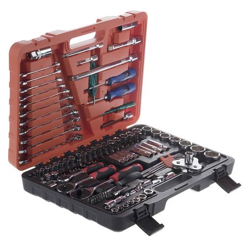 مجموعهی فوق یکی از محصولات تولیدی شرکت «ساتاگود» (Satagood) است که تحت عنوان مدل «G-10002» به بازار عرضه میشود. بخش عمدهی ابزارهای این مجموعهی ۱۲۳عددی را سریهای بکس و پیچگوشتی تشکیل میدهند که از درایوهای ½ و ¼ اینچی برخوردارند. در بین سریهای بکس، ۷ سری دارای درایو ½ اینچی هستند و شامل سایزهای ۲۰، ۲۱، ۲۲، ۲۴، ۲۷، ۳۰ و ۳۲ میلیمتری میشوند. سریهای بکس با درایو ¼ اینچ نیز سایزهایی ۹، ۱۰، ۱۱، ۱۲، ۱۳، ۱۴، ۱۵، ۱۶، ۱۷، ۱۸ و ۱۹ میلیمتری دارند. دستههای متنوعی نیز برای نصب این سریها وجود دارد که بهشکل کمکی، جغجغهای و ثابت طراحی شدهاند. ۱۱ سری بکس با درایو ۱/۴ اینچ و سریهای با درایو ۱/۲ اینچ ۴٫۵ سانتیمتر طول دارند. وجود انواع سری پیچگوشتی در اشکال دوسو، چهارسو، آلنی و ستارهای از دیگر ویژگیهای این محصول است. گفتنی است تمامی این سریها از جنس کروم وانادیوم هستند و دربرابر ضربه و خوردگی مقاومت خوبی دارند. تمام ابزارهای این مجموعه درون کیفی پلاستیکی قرار میگیرند که هر ابزار محلی مجزا دارد.